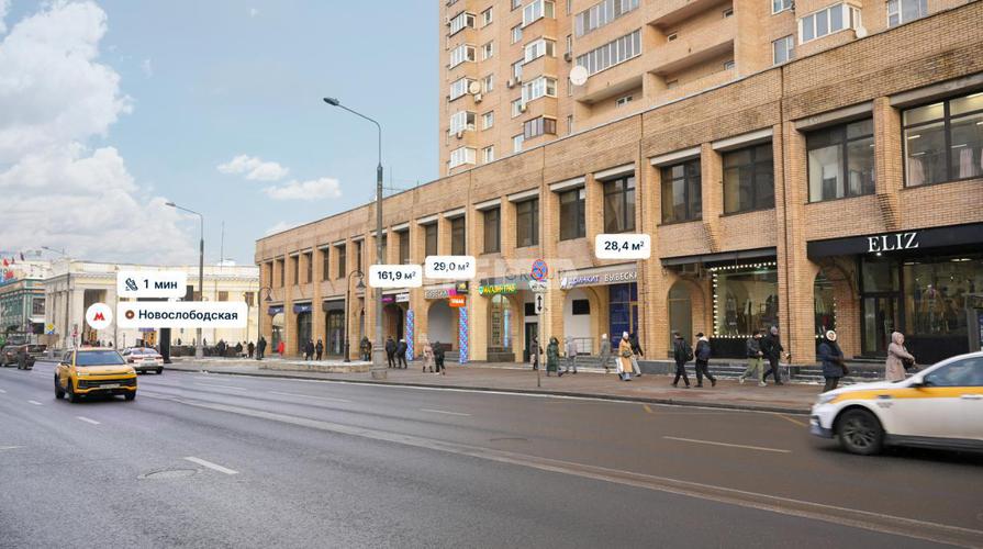 Помещение свободного назначения формата Street Retail в ЦАО Москвы. В шаговой доступности до станции метро Новослободская. Активный пешеходный и автомобильный трафик. Отличная пешеходная и транспортная доступность.